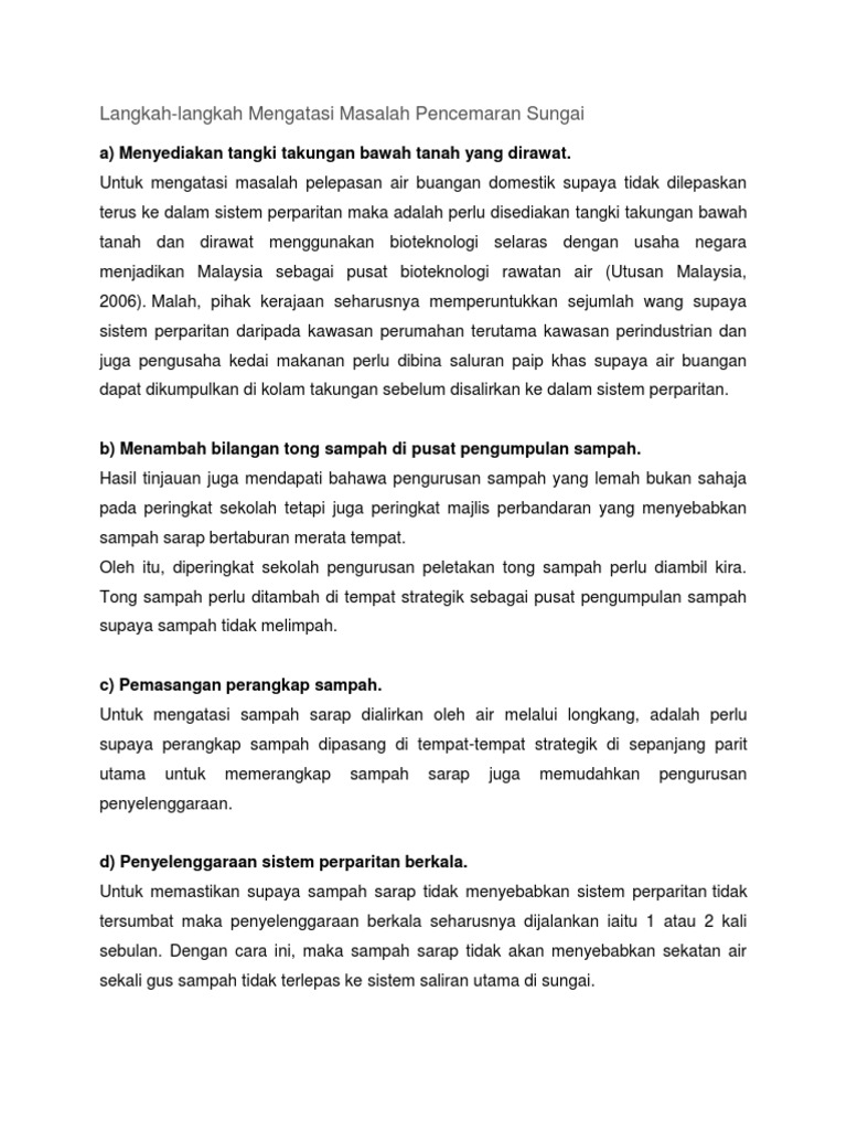 Contoh Karangan Langkah Mengatasi Pencemaran Sungai By Kur_459Aryanna 09 Aug, 2022 Post a Comment Karangan Langkah Mengatasi Pencemaran Sungai Gordoncxt Karangan Langkah Mengatasi Pencemaran Sungai Otosection Karangan Langkah Mengatasi Pencemaran Sungai Otosection Pencemaran Sungai Pdf Punca Punca Pencemaran Sungai Share No comments for "Contoh Karangan Langkah Mengatasi Pencemaran Sungai"